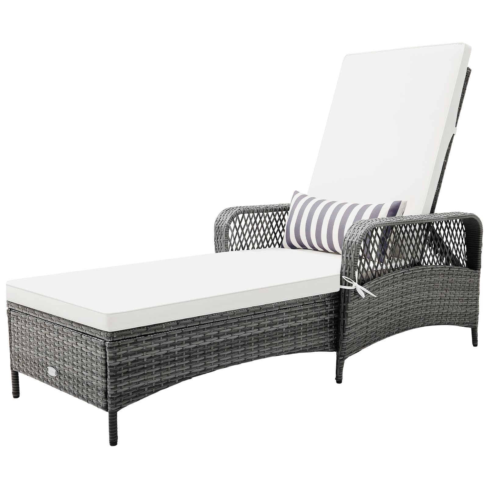 6 Gear Adjustable Recliner with Armrest & Pillow for Deck