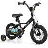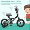 Featuring an adjustable seat and handlebars, this bike adapts effortlessly to your child's height as they grow, ensuring comfort and confidence at every stage. It comes with a dual brake system, a hand brake designed for small hands and a rear coaster brake for instant stopping by simply pedaling backward. The fully enclosed chain guard keeps little fingers and clothing safe, while wide pneumatic tires provide smooth, stable rides on wood floors, asphalt, brick paths, and cement sidewalks. For beginners, detachable training wheels offer stability and can be removed according to kids’ requirement. Besides, come with pre-assembled design, the 12" children bike can setup quick and hassle-free. The bike is the ideal gift to spark joy, and build confidence.