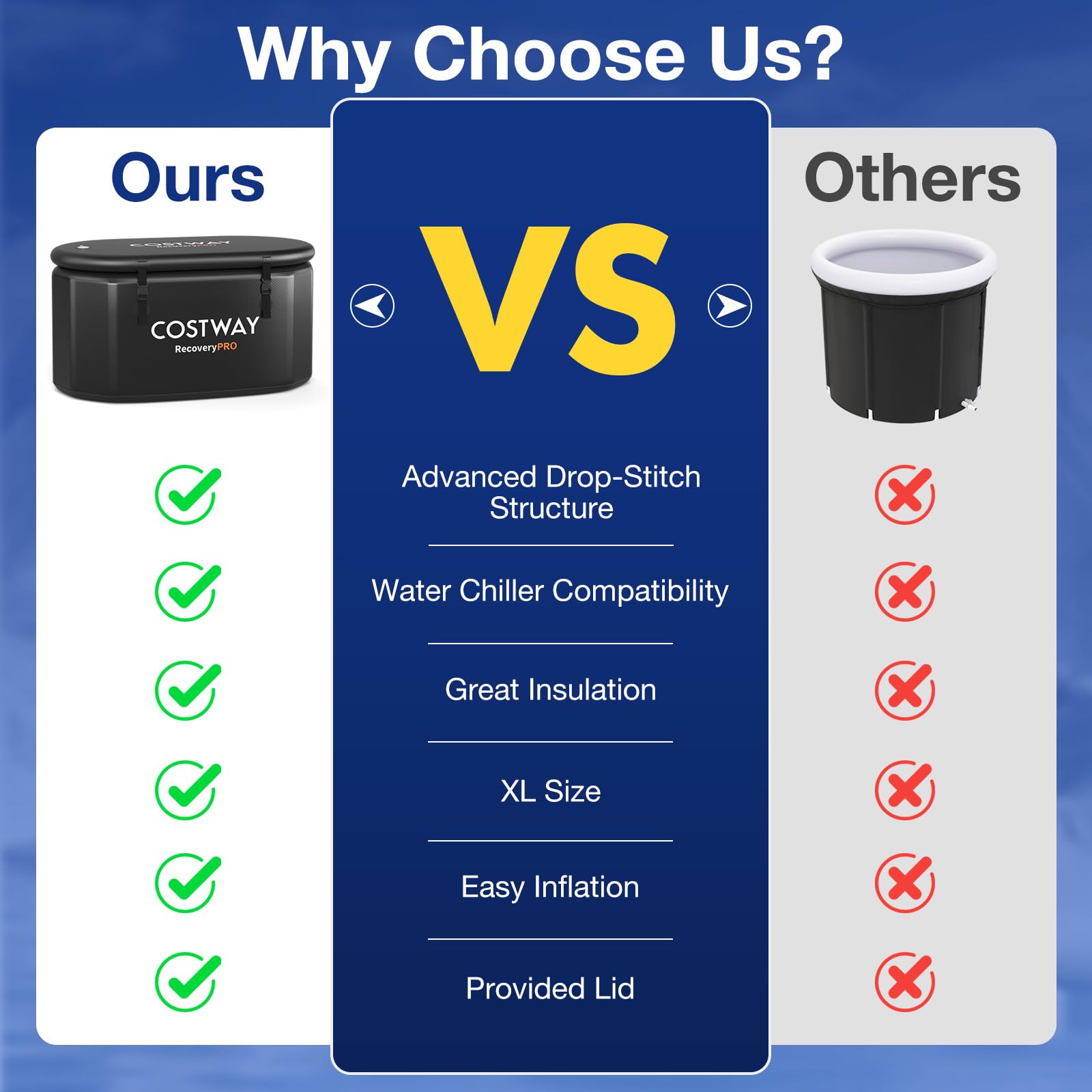 129 Gal Oval Ice Bath Tub w/Cover Portable Outdoor Ice Bath Tub w/Backpack