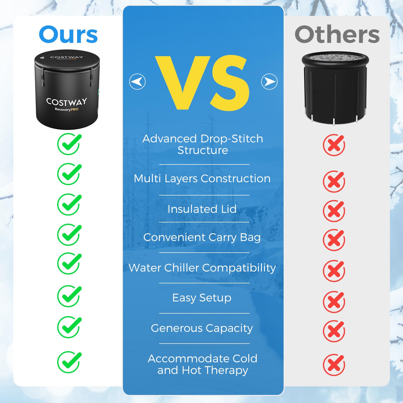 Constructed with a robust combination of multi-layer insulation, the cold plunge bathtub promises both thermal efficiency and superior comfort. Immerse yourself in comfort with its spacious design, perfect for individuals up to 6 ft tall and capable of holding up to 79 gallons. Setup is a breeze thanks to the quick inflation feature, and the convenient carry bag makes it easy to take wherever you go. Moreover, integrating a water chiller is straightforward with the standard-sized water inlets and outlets, ensuring that you can easily maintain the perfect temperature for your relaxation sessions.