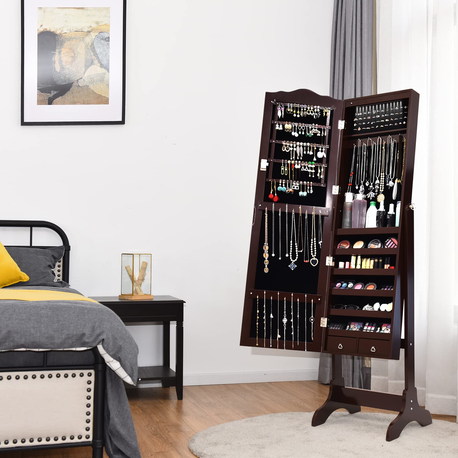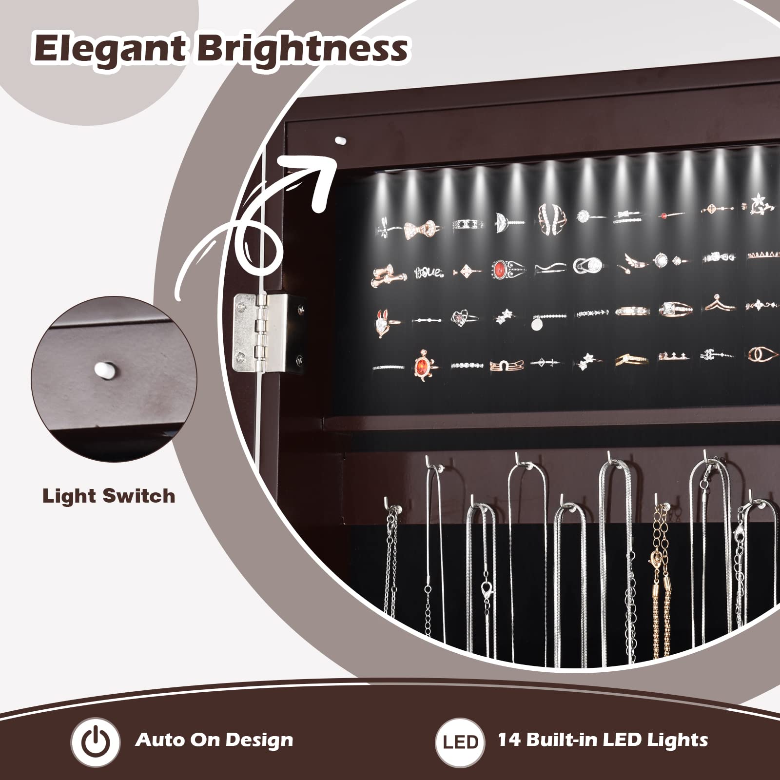 Our freestanding jewelry cabinet with 14 LED lights can make it easy for you to find the jewelry you need.