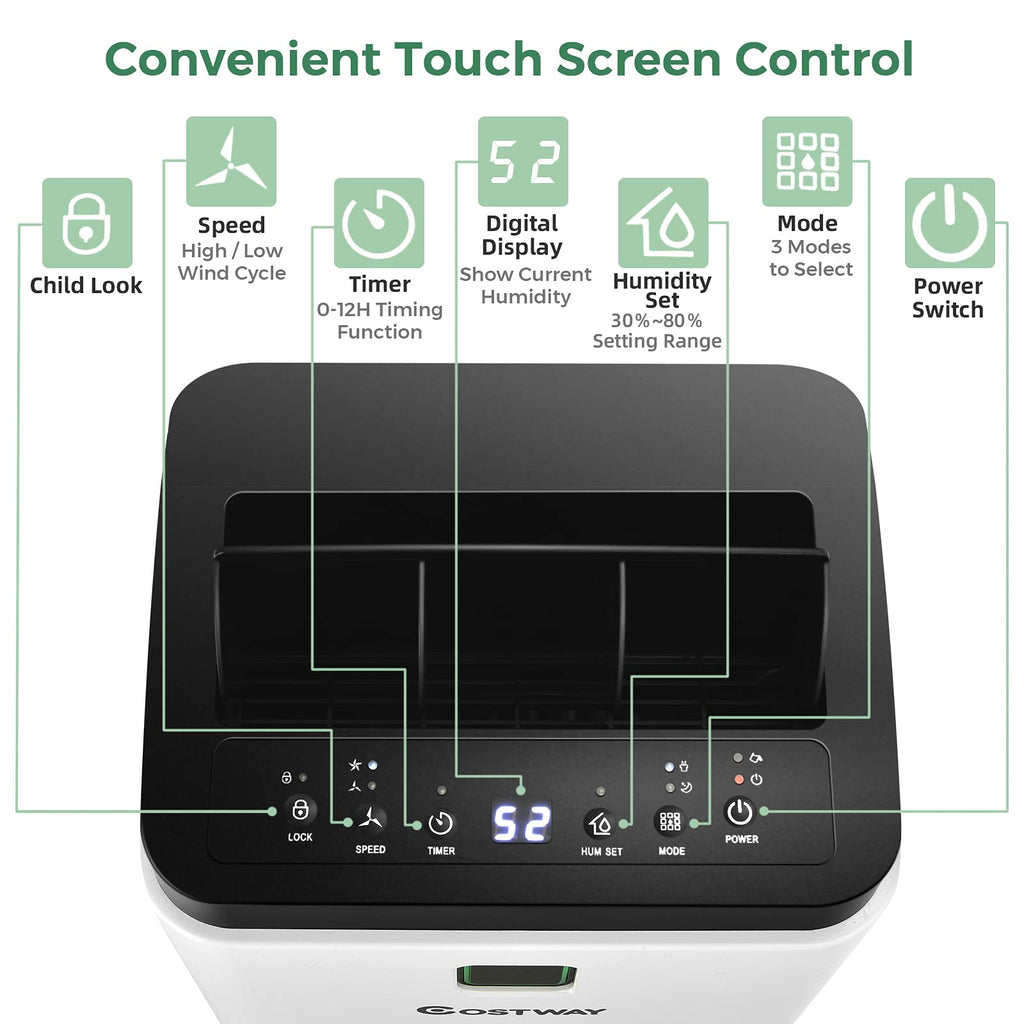 1500 Sq. Ft Dehumidifier for Home & Medium Spaces, Portable 24 Pints Dehumidifier w/ 3 Color LED Light
