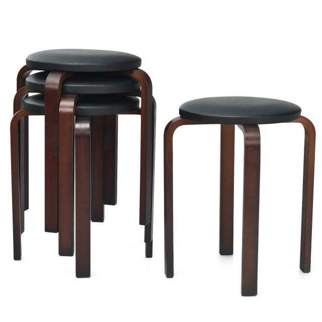- 🏫 [Stackable & Backless Design] This 4-piece bentwood stool set boasts a stackable design for easy storage when out of use. What’s more, the backless stools can be pushed and stowed under a table to save space.