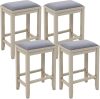 2/4 Pieces 25 Inch Upholstered Bar Stool Set with Solid Rubber Wood Frame and Footrest