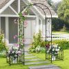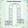 Look no further than this 2 in 1 arbor trellis. It features a middle garden arch that perfect for climbing vines or decorations, and 2 side planters for flowers or vegetables, which offers endless possibilities for your outdoor space. This metal garden trellis can be decorated by balloons, tulles, lights and so on. Its stylish appearance with elegant patterns and arc top design adds sophistication to any setting, making it suitable for garden weddings, courtyard entrances, or patios. Besides, crafted from sturdy sprayed metal pipes, this garden arch boasts a stable frame to withstand long term outdoor use. And the inclusion of 8 ground stakes ensures added stability. Hence, this decorative metal garden trellis is a practical and elegant addition to your outdoor space.