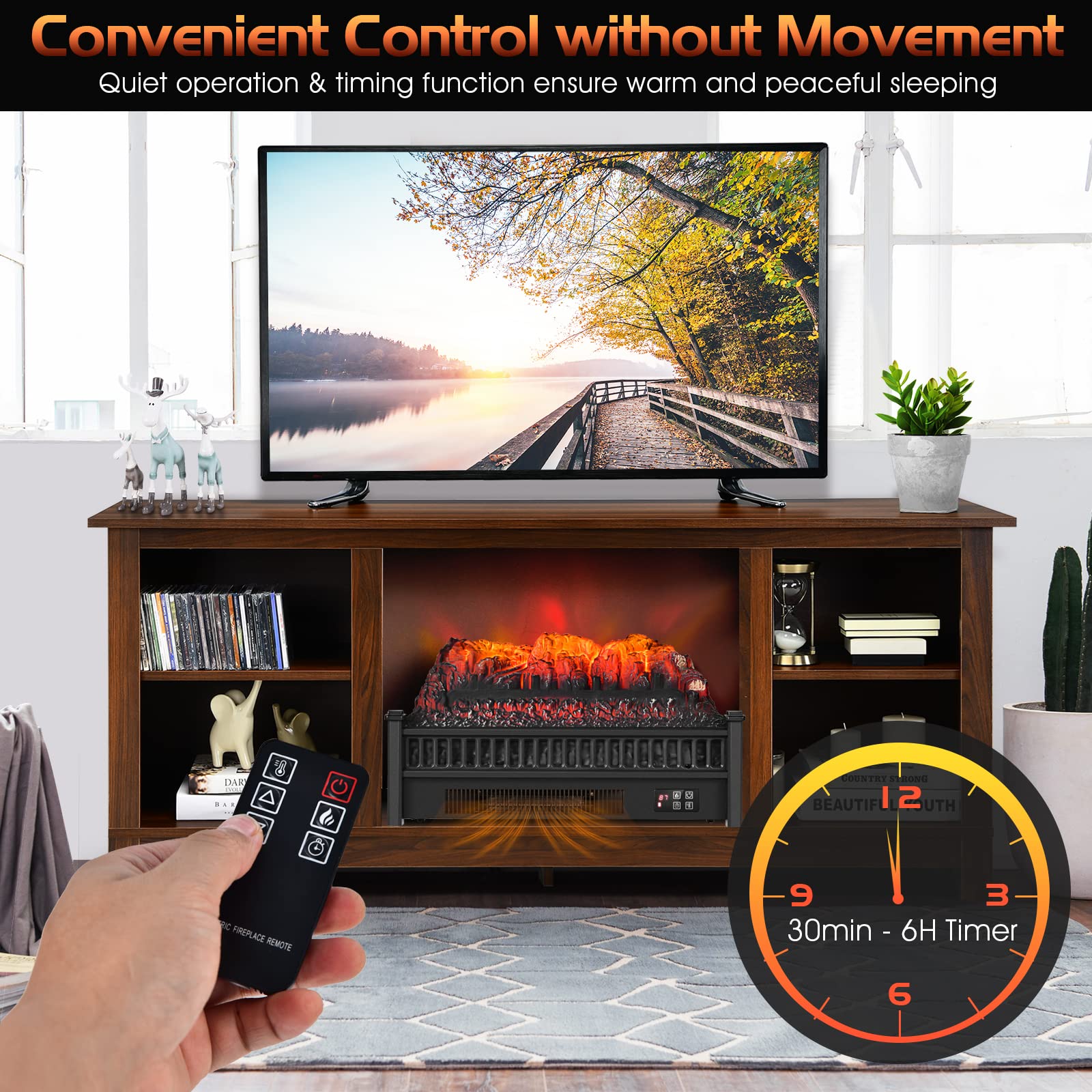 - Powerful & Energy-saving Heating: This electric log heater has 1400W heating power and 4777BTU heat output, offering you wide-spread and comfortable heat supply in the cold days. More, compared with a traditional wood-burning stove, our electric fireplace heater won't produce any dust, ashes, harmful smoke, etc, and is budget-friendly.