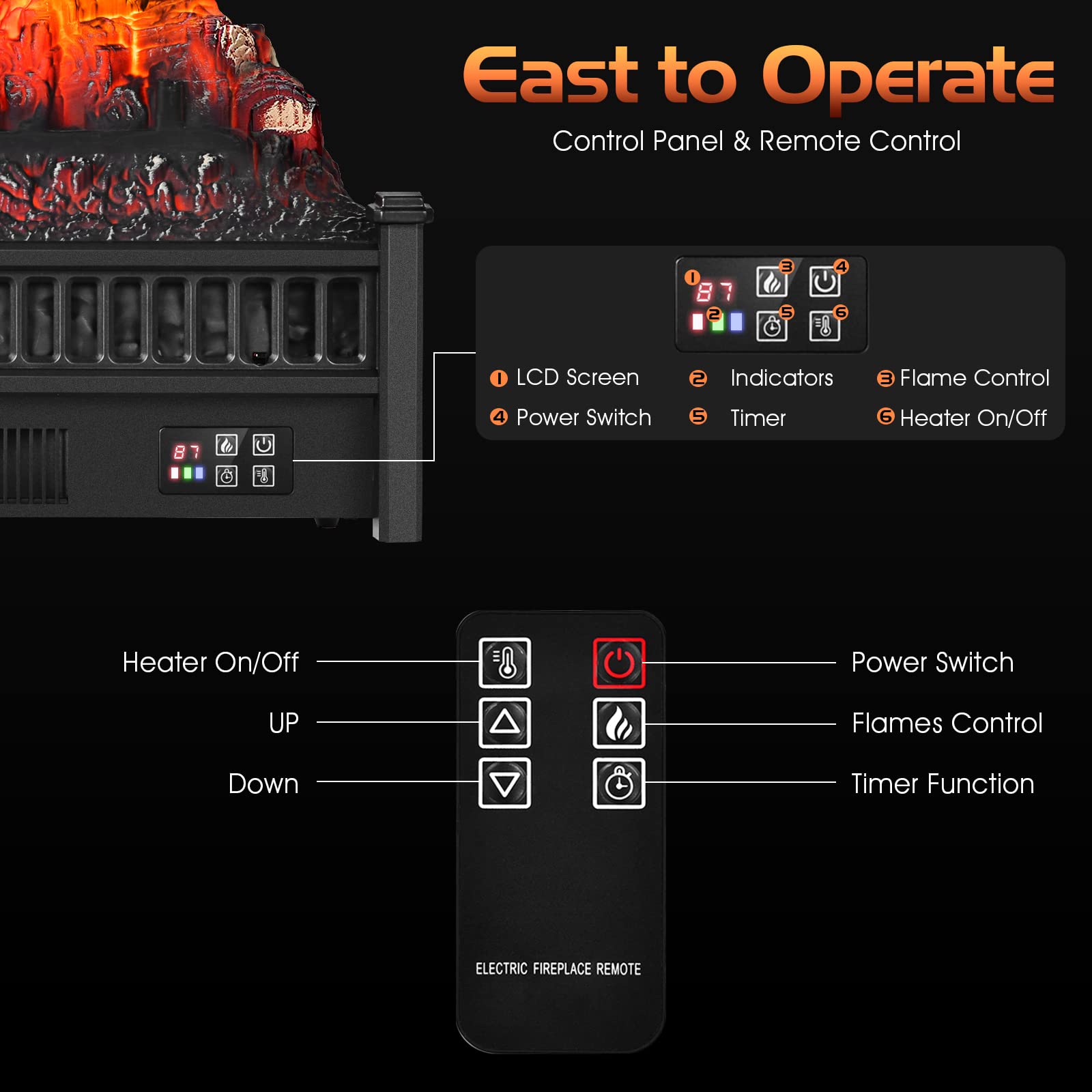 - Overheat Protection & 0.5-6H Timer: This 23" fireplace log set heater comes with overheating protection, which will automatically turn the heater off when the inside temperature reaches 221°F. What's more, the built-in timer allows you to set auto shut-off time between 0.5H-6H, which can give you a warm sleep all night while saving electricity.