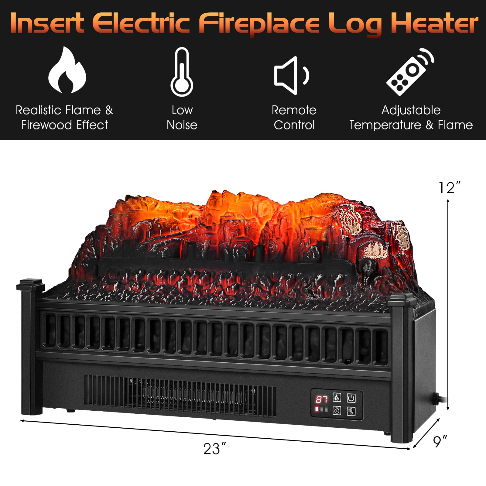 Combining beauty with practicability, our 23" electric fireplace log heater is a perfect addition to your home! Our fireplace log heater works with electricity instead of flammable materials, so you don't have to worry about harmful smokes, messy ashes, cleaning jobs after using it. With powerful 4777 BTU heat output and adjustable thermostat (62°F- 82°F), this space heater can get rid of cold in your room quickly. And the heater adopts overheat protection to make sure of your safety while using it. The compact design and 3-brightness adjustable flame effect will let you enjoy the charm of a vintage fireplace stove anywhere in your home, including the living room, bedroom, study room, etc. And you can install the fireplace heater insert or freestanding. Moreover, the remote control allows you to conveniently operate the fireplace from a distance.