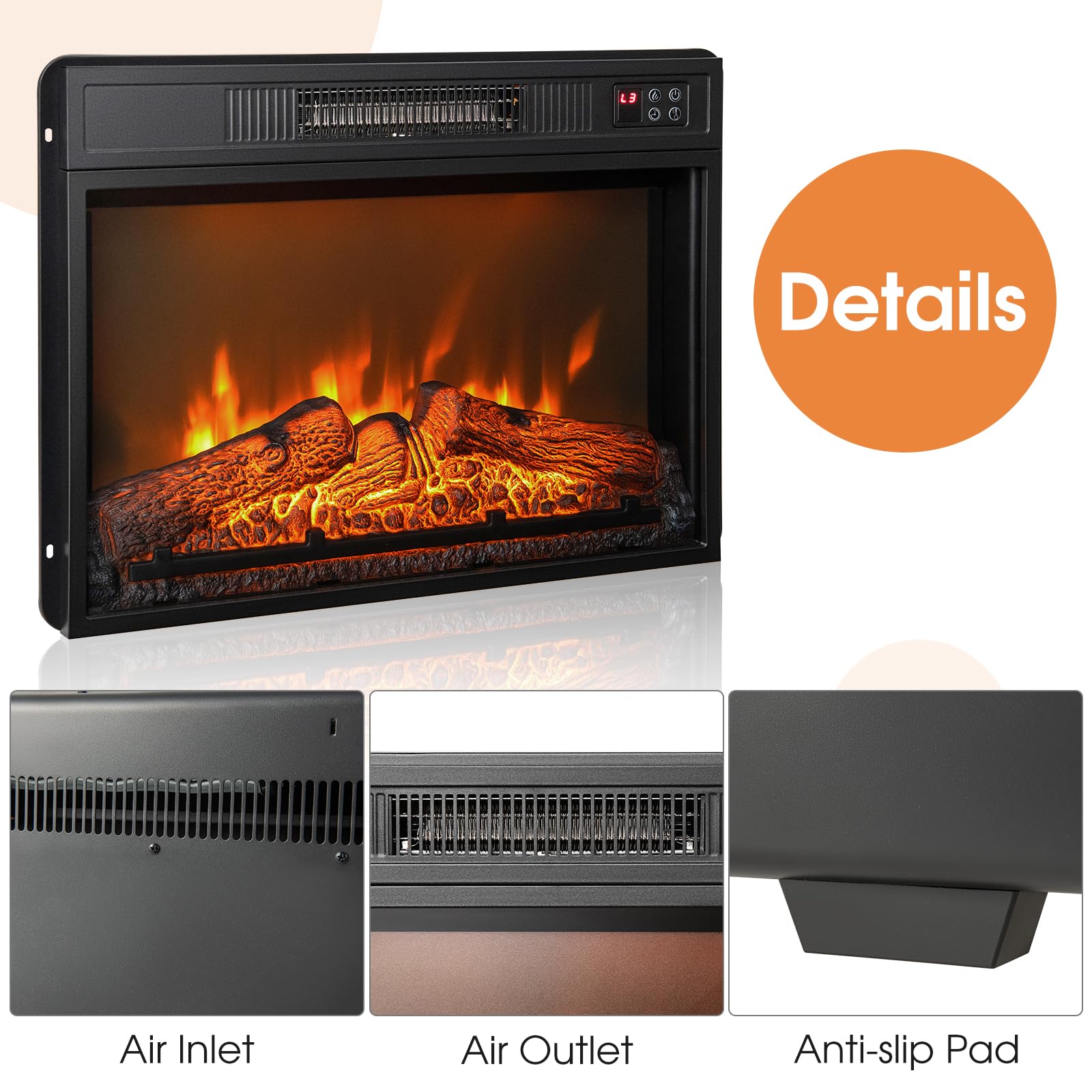 23-Inch Electric Fireplace Insert, 1400W Recessed Fireplace Heater with Remote Control, Thermostat