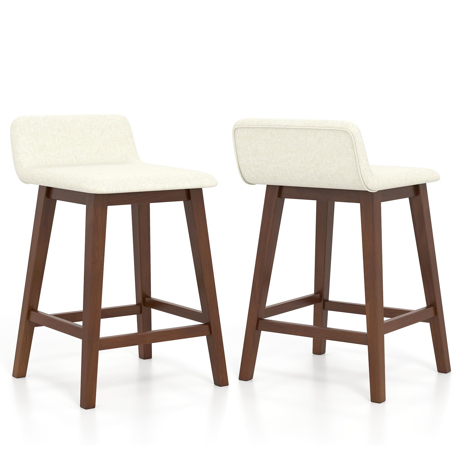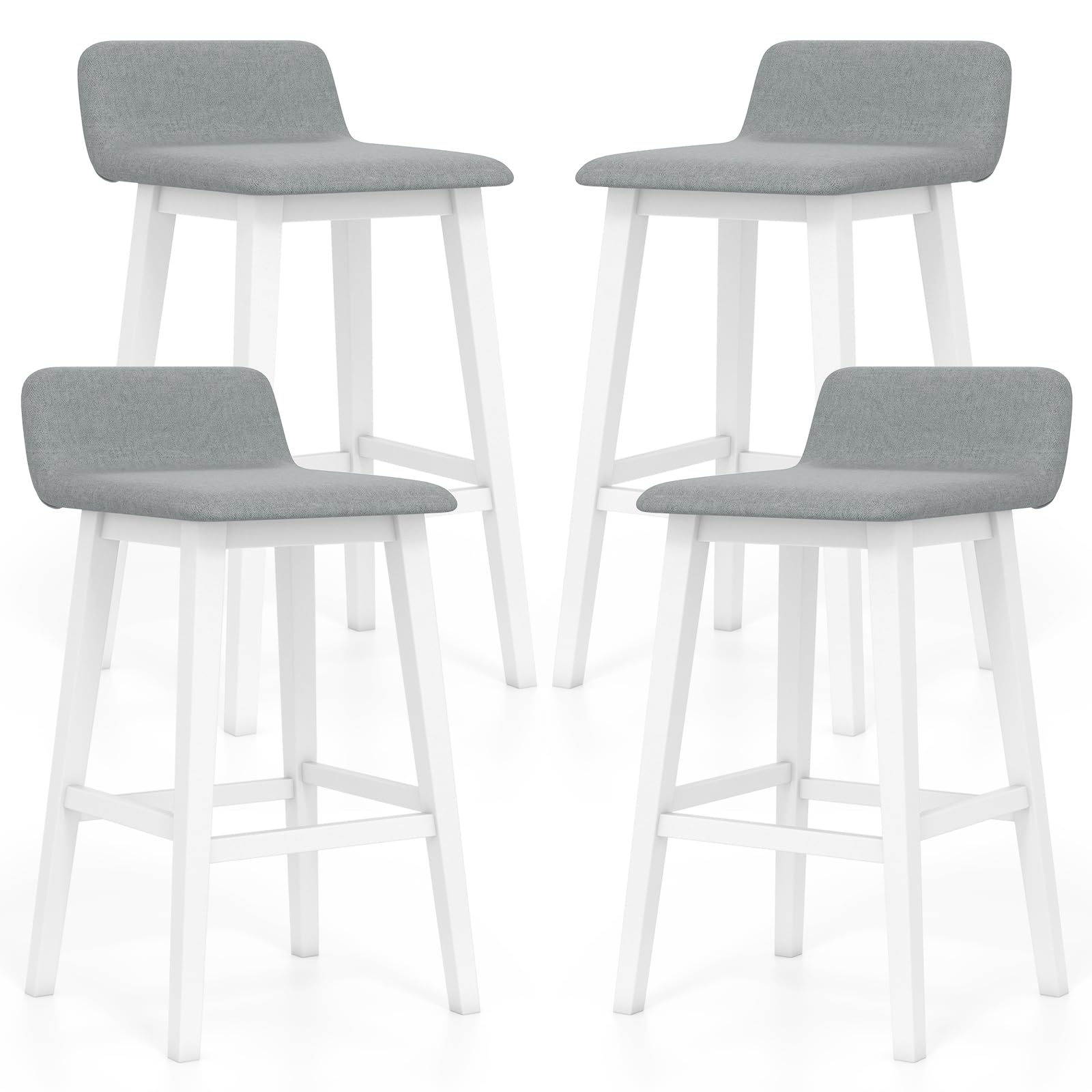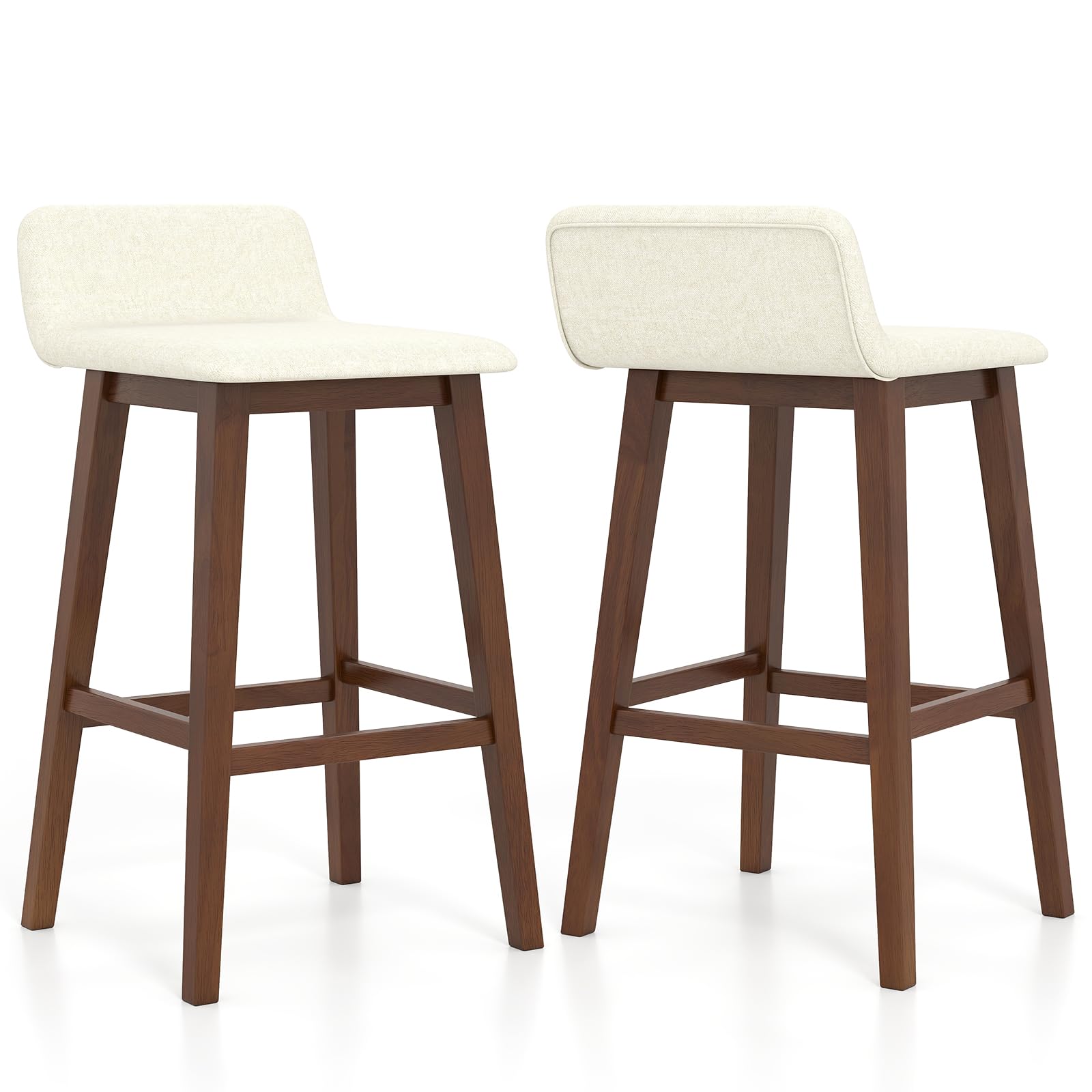 Description:Elevate your living space with this upholstered barstool set of 2.These stools feature comfy, padded seats and backs with a gentle faux linen cover that is both skin-friendly and breathable, ensuring long-lasting comfort. The strong rubber wood legs promise stability and strong support. With a contoured, low-back seat and footrest, these stools will bring you comfortable sitting experience. The appealing appearance makes the high-top chairs a perfect addition to any kitchen, dining room, or pub, redefining your space with chic versatility and cozy allure.Features:Padded seat and back bring optimal comfortFaux linen fabric for both coziness and durabilityRobust rubber wood legs for strong support and long-lasting useL-shaped seat with low back offers ergonomic comfortBuilt-in footrest makes you more relaxedStylish appearance fits different decorationsPerfect for dining room, kitchen, home barAssembly is required