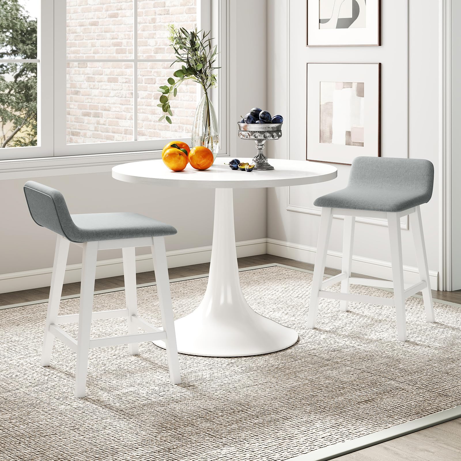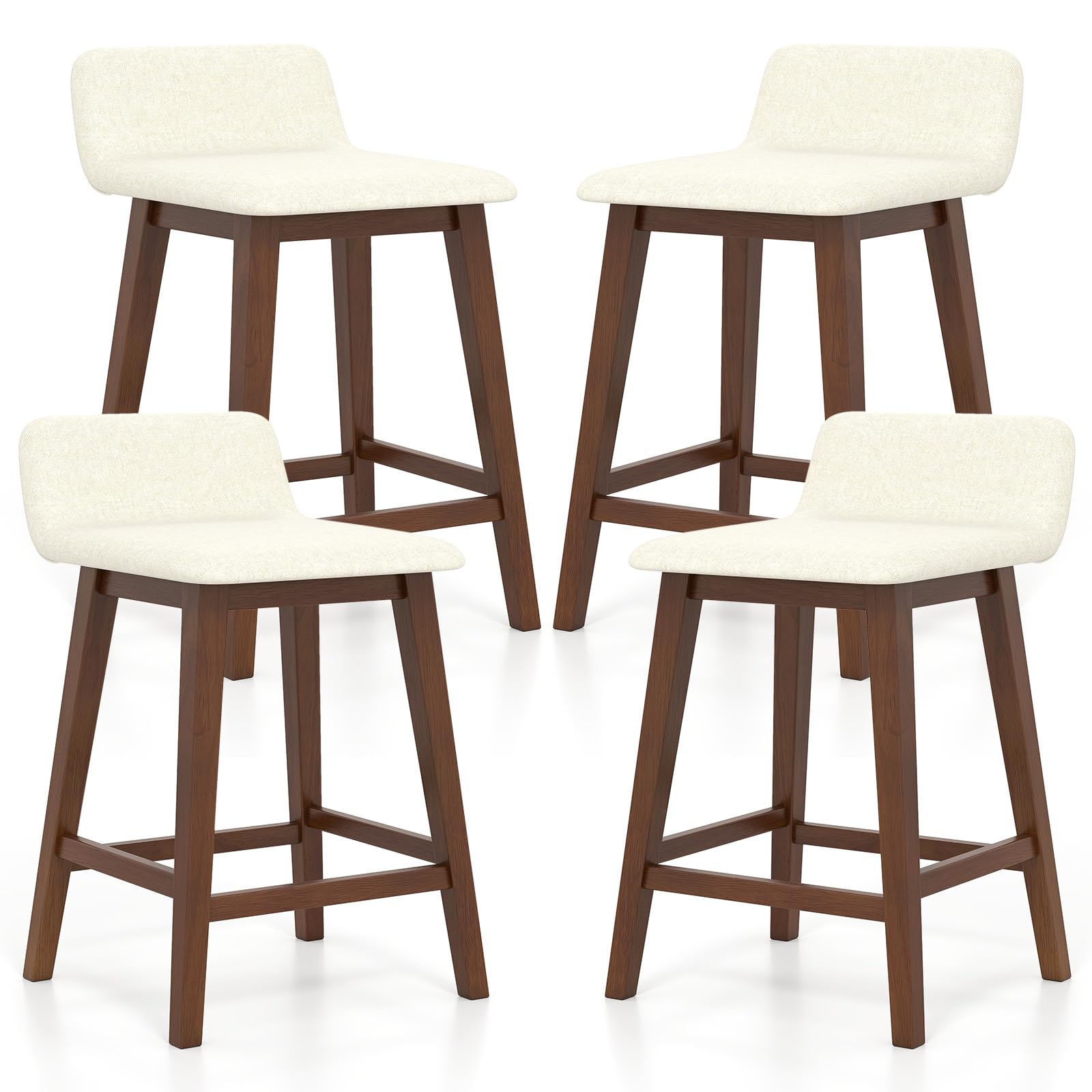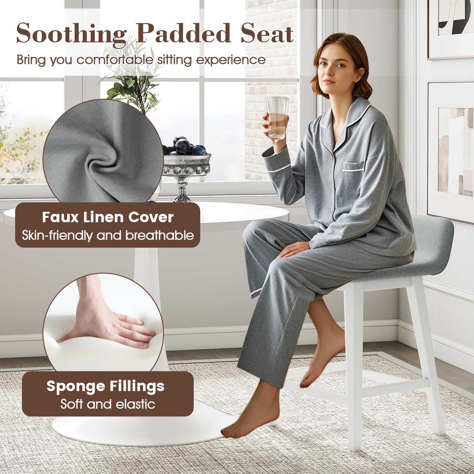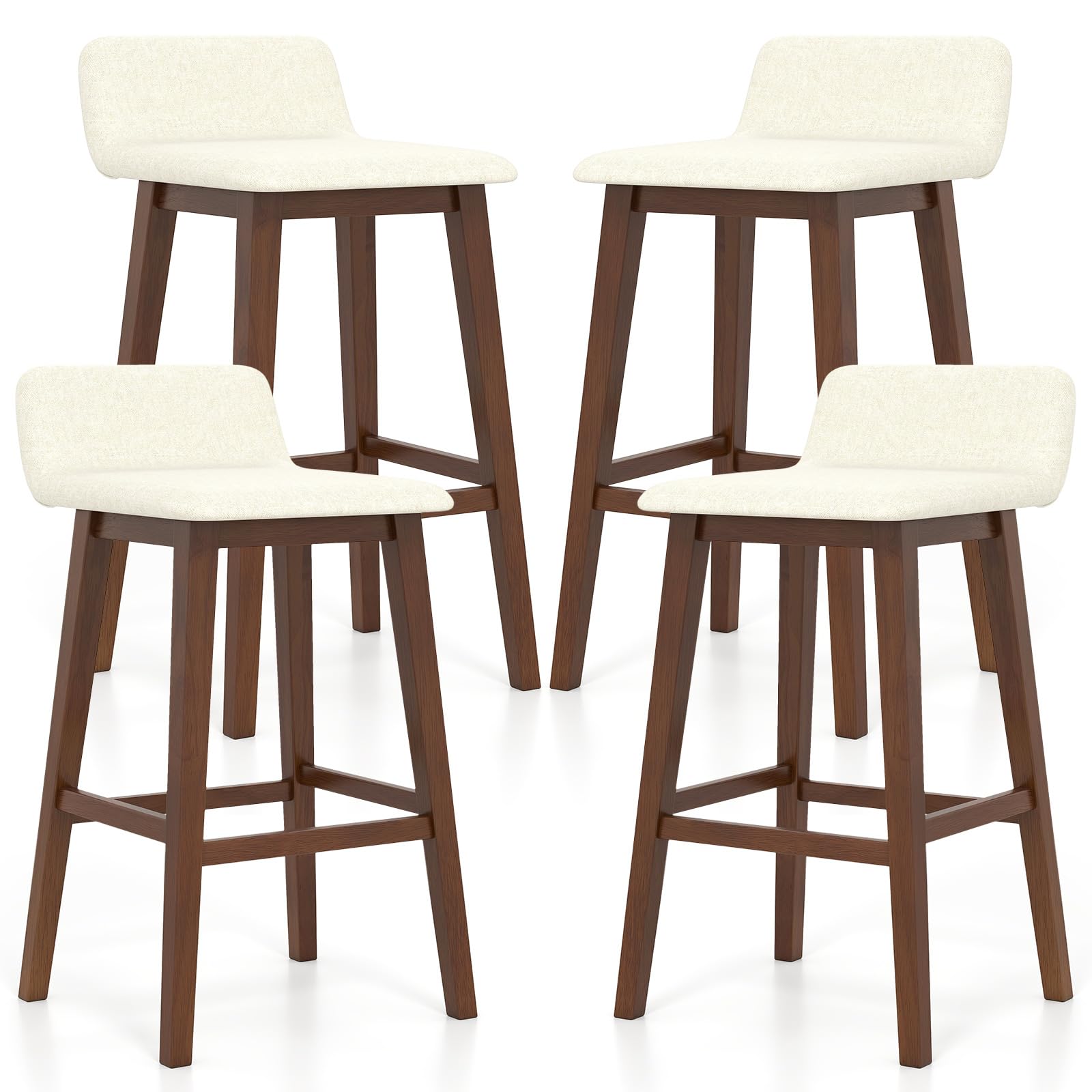 Description:Elevate your living space with this upholstered barstool set of 2.These stools feature comfy, padded seats and backs with a gentle faux linen cover that is both skin-friendly and breathable, ensuring long-lasting comfort. The strong rubber wood legs promise stability and strong support. With a contoured, low-back seat and footrest, these stools will bring you comfortable sitting experience. The appealing appearance makes the high-top chairs a perfect addition to any kitchen, dining room, or pub, redefining your space with chic versatility and cozy allure.Features:Padded seat and back bring optimal comfortFaux linen fabric for both coziness and durabilityRobust rubber wood legs for strong support and long-lasting useL-shaped seat with low back offers ergonomic comfortBuilt-in footrest makes you more relaxedStylish appearance fits different decorationsPerfect for dining room, kitchen, home barAssembly is required