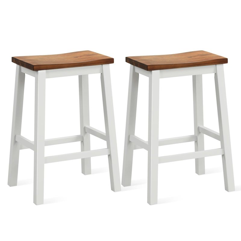 With a seat and legs crafted from natural acacia wood and footrests made of rubber wood, these bar stools feature industrial charm and excellent durability. Therefore, these saddle stools are undoubtedly ideal additions to your kitchen island, dining room, living area, or home bar. Besides, the ergonomic seat and convenient footrests offer a cozy seating experience for long-time meals. In addition, complete with some well-made details, like sturdy supporting legs and reinforced triangular structures, each counter-height stool can support people of up to 350 lbs / 160 kg, while the non-slip foot pads ensure excellent stability.