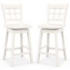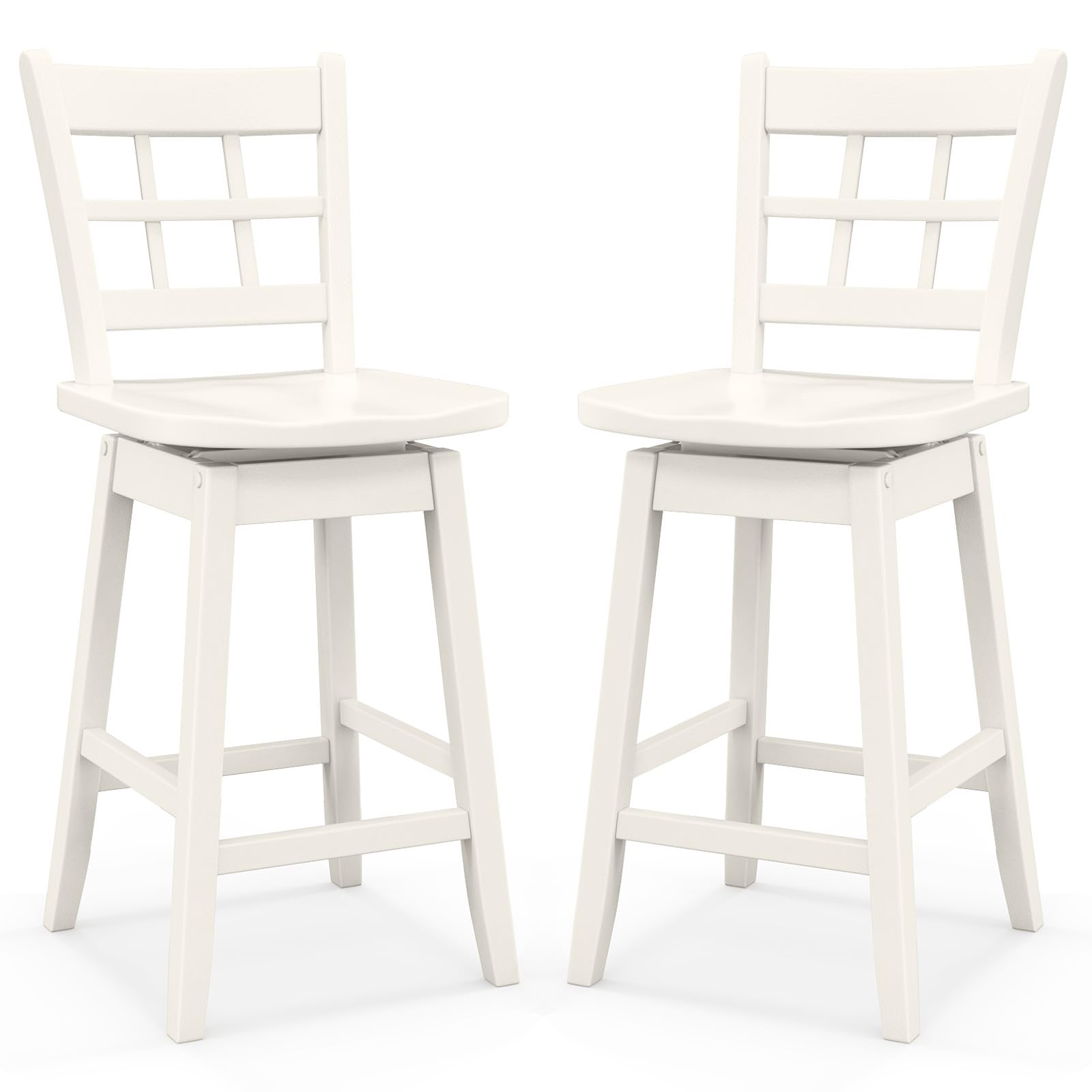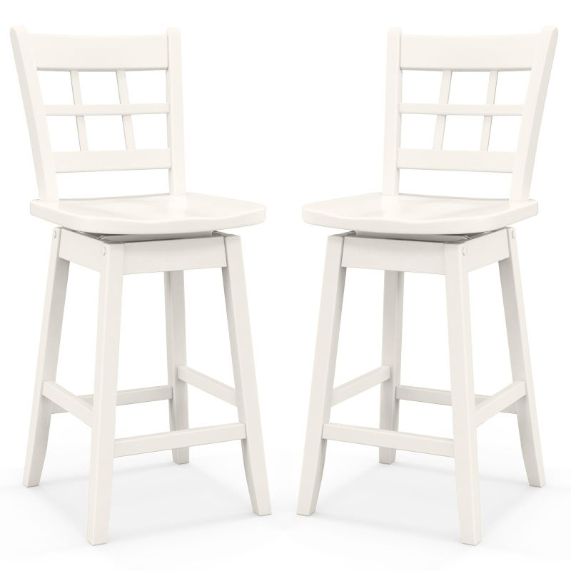 Upgrade your seating experience with our set of 2 swivel barstools, designed for ultimate comfort and style. These ergonomic stools feature thoughtful details including a unique hollow back design, contoured seat and the integrated footrest for added comfort. The 360-degree swivel seat allows for easy socializing, perfect for family gatherings or home bars. Crafted from solid rubber wood, these sturdy wooden barstools offer both elegance and durability, seamlessly blending into any space, such as bars, kitchens, cafes and more.