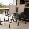 Boasting a 24-inch seat height, it perfectly matches most outdoor bars, high tables, countertops and patio islands, meeting your needs for outdoor dining, chatting and entertainment. The metal frame is treated with anti-rust technology, and the woven fabric is water-resistant, making it suitable for patios, gardens, balconies, camping and poolside gatherings. It’s easy to clean and maintain, bringing lasting convenience and enjoyment to your outdoor life.