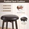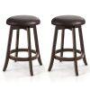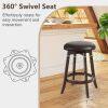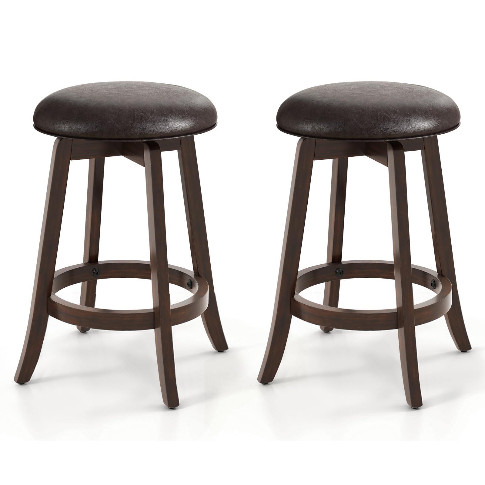 Elevate your home bar with our swivel bar stools set of 2/4. Each bar stool features a thick, high-density sponge seat cushion upholstered in wear-resistant PU leather, offering a touch of elegance and lasting comfort. The solid rubber wood construction ensures unmatched stability, with curved legs for sturdy support and non-slip foot pads to protect your floors. The 360° swivel design allows you to effortlessly rotate for easy movement and interaction, while the built-in footrest enhances comfort. The space-saving, backless design tucks neatly under counters. These swivel bar stools are perfect for kitchen counters, home bars, or dining rooms. Add a retro, luxurious touch to any space with this versatile stool set.