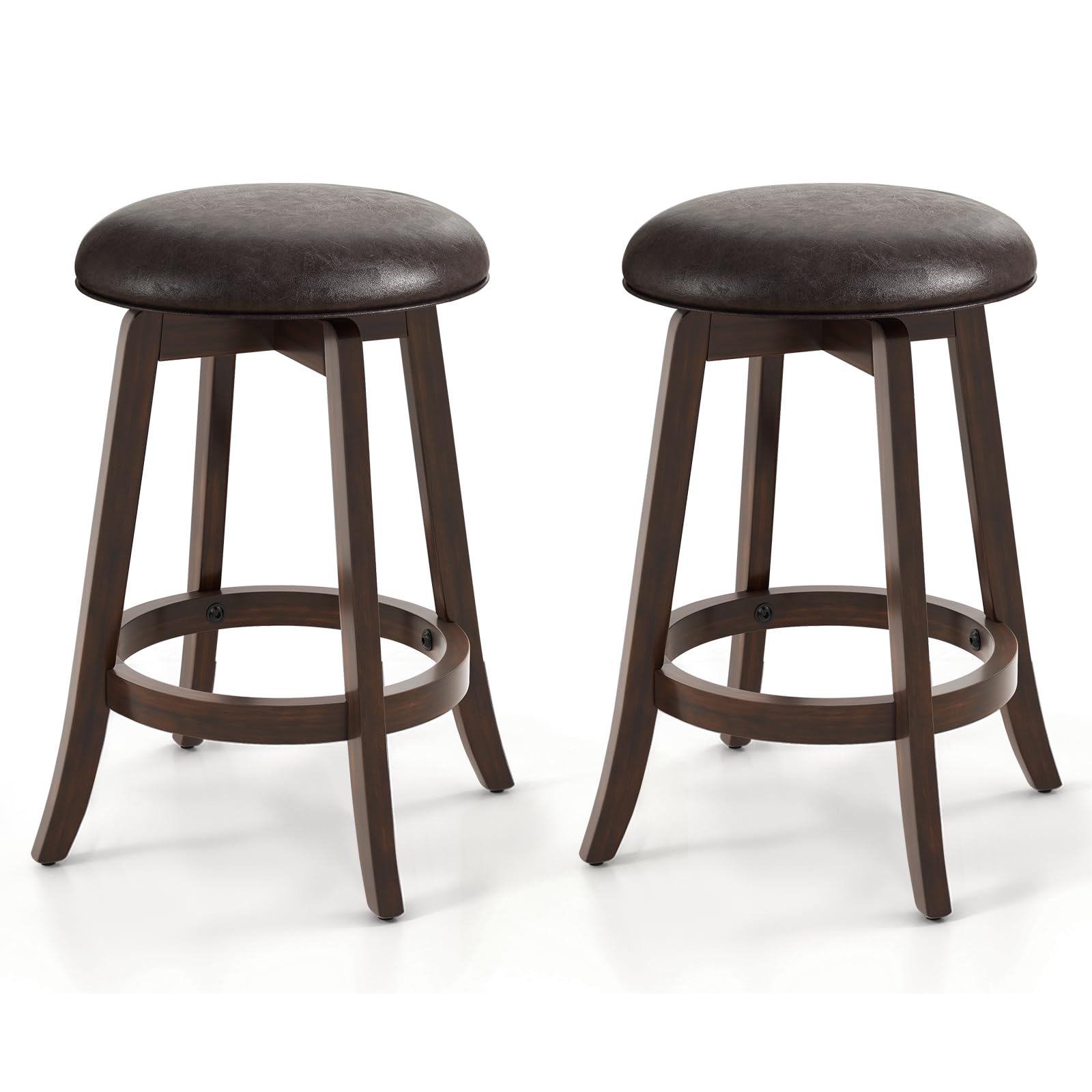 24-Inch Swivel Bar Stools Set of 2/4 Upholstered Barstools w/PU Leather Seat & Solid Rubber Wood Legs