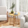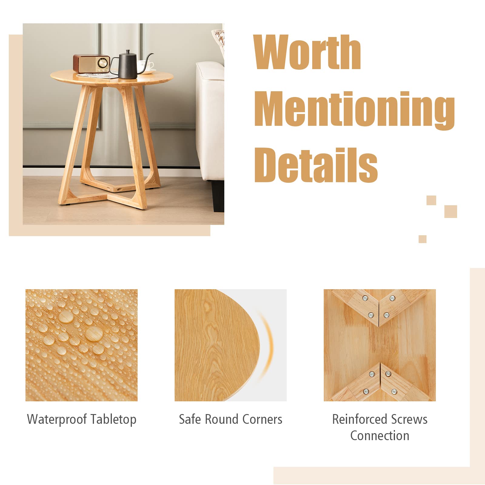 24” Round Side Table Solid Rubber Wood End Table Compact Tea Table Beside Sofa or Bed