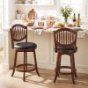 Experience exceptional comfort and style with these 360° swivel bar stools. Designed with skin-friendly PVC leathers and soft sponges, the upholstered seats provide a comfortable seating experience. The solid rubber wood construction of these barstools supports up to 330 lbs, ensuring stable and reliable use. Built-in footrests and ergonomic backrests offer excellent support for extended sitting, making these tall bar stools both functional and comfortable.