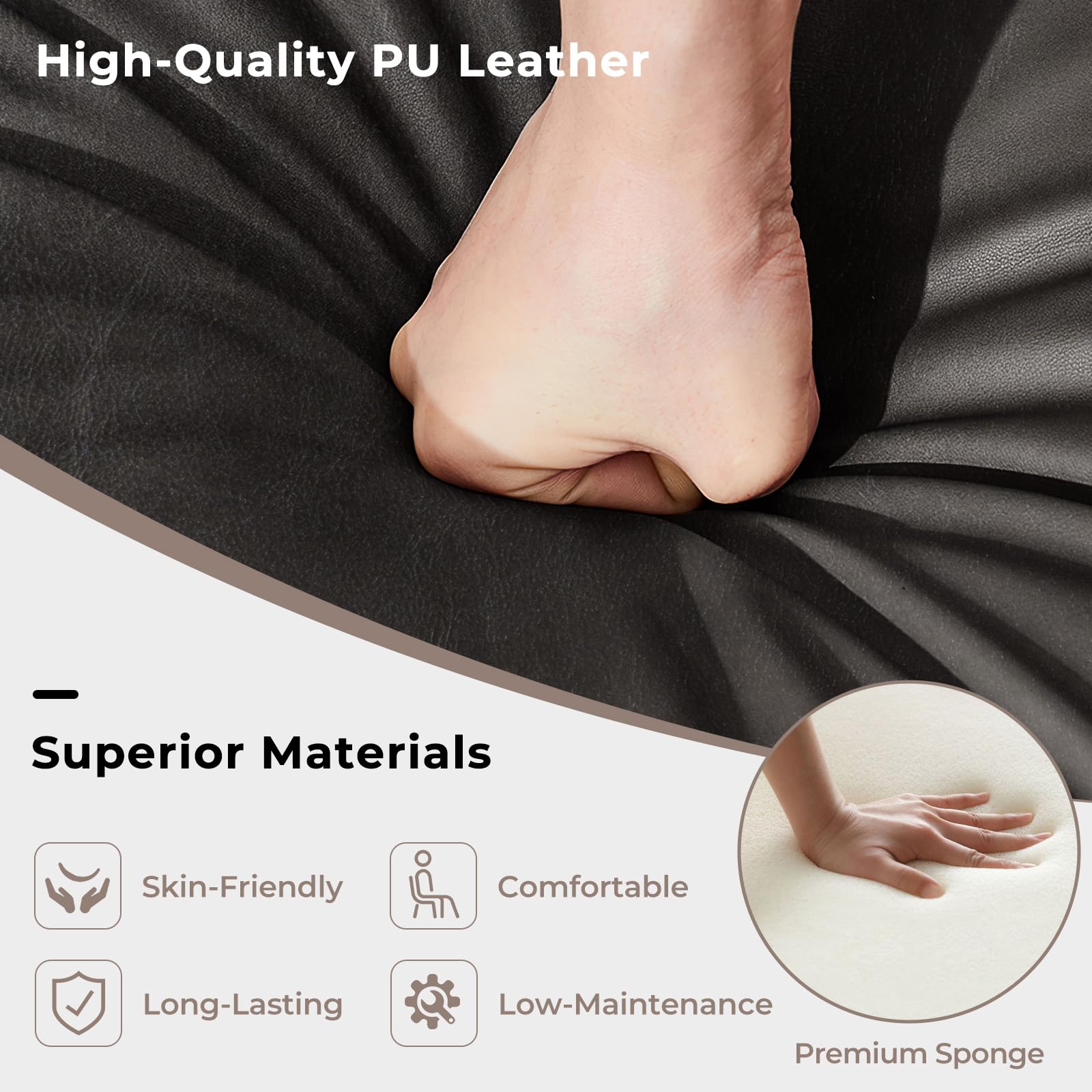 All for comfortable sitting, these bar chairs offer optimal seating posture, thanks to their inclined backrest and 8” high footrest that allows for leg stretching. Sink into the thick seat, which is made of premium PU leather and sponge to reduce the sedentary fatigue. Crafted from solid rubber wood, these bar chairs offer stability and a secure seating experience, with a load capacity of up to 275 lbs. The natural grains of the rubber wood add warmth and character to any space, making these chairs versatile for both everyday dining and special gatherings. Assembly is a breeze with clear instructions and all necessary components included. Each chair measures 16.5”L x 19.5”W x 39”H, completing your perfect seating arrangement.