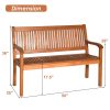 Unwind and relax in style with this outdoor wooden bench, perfect for your garden, backyard, patio, or porch. Whether you’re savoring a cup of tea, admiring your garden view, or taking a break after a workout, this bench provides a comfortable spot to unwind. Hosting a party? This versatile bench offers additional seating for your guests. Suitable for various occasions, this bench is designed to bring you convenience and comfort effortlessly. Elevate your outdoor space with this functional and inviting piece of furniture.