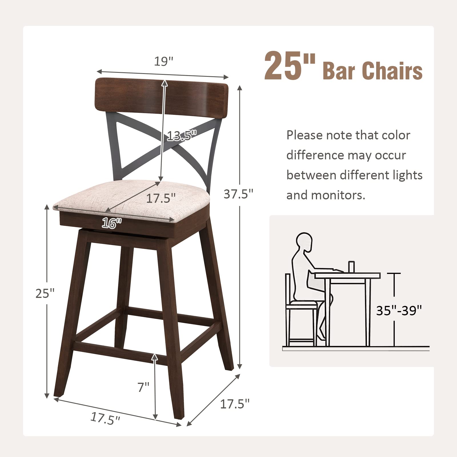 25 Inch Swivel Ergonomic Counter Height Chairs with Cushioned Seat