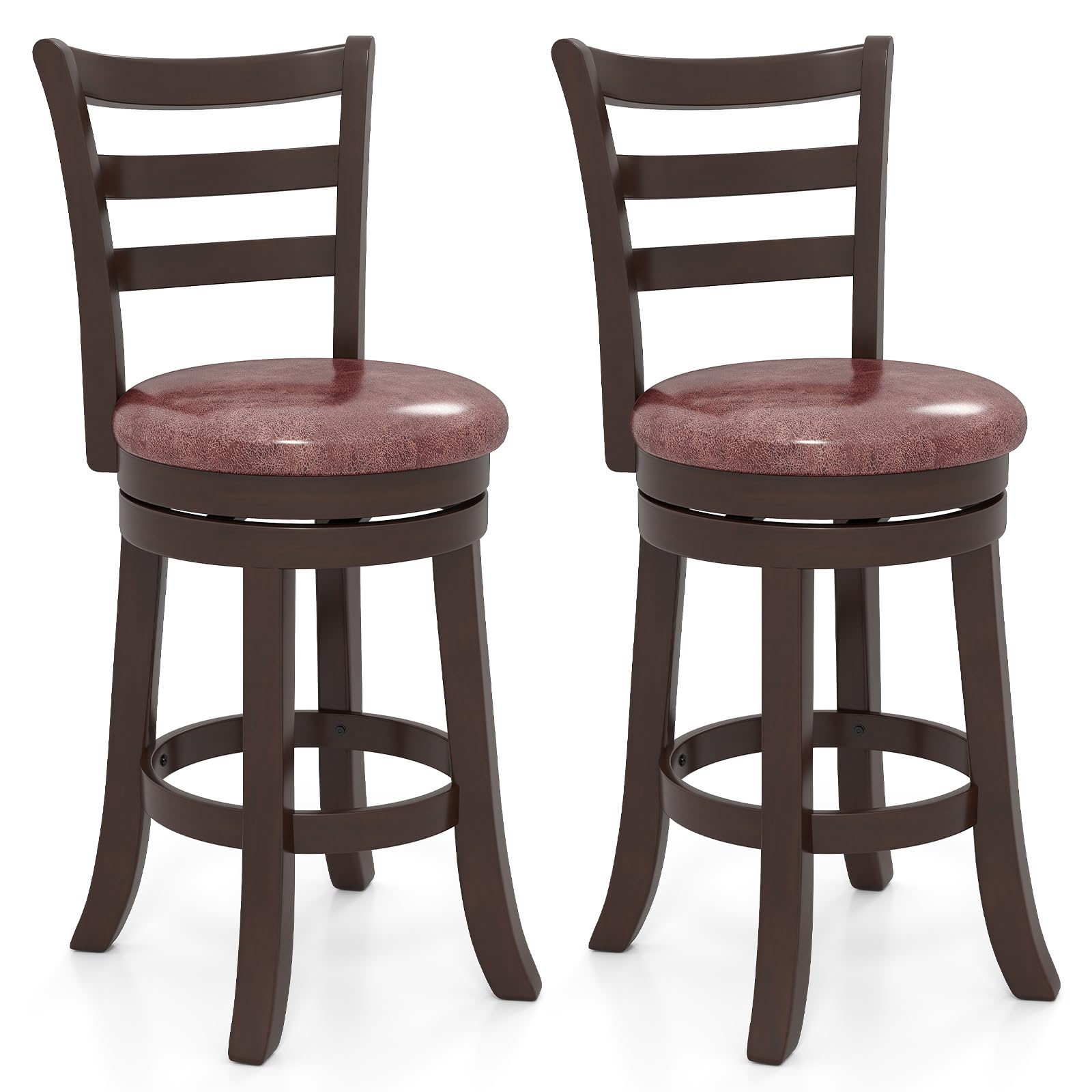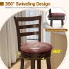 These high-top swivel chairs feature a sturdy rubberwood frame that supports up to 400 lbs, ensuring reliable strength in any setting. The soft sponge padding wrapped in faux leather offers luxurious comfort while remaining scratch-resistant and waterproof for easy maintenance. And the 360° swiveling design makes it flexible to turn around for better communication. The ergonomic backrest and convenient footrest provide excellent support for long-lasting coziness. Perfectly blending timeless style with practicality, these wood swivel barstools with well-designed details enhance kitchens, dining rooms, and home bars with a warm and inviting atmosphere.