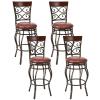 Our bar stools set is retro and elegant, which will add a retro style to your bar or kitchen. Featuring sturdy and powder-coated metal frame, it is rust-proof and corrosion resistant. Soft sponge-filled seats and suitable foot rest provide more comfort for you or your guests when enjoying your drinks or meals. The elegant-designed backrest is ergonomic and comfortable. Besides, the 360-degreee swivel seat give you the freedom to change direction for more convenient communication with others. In addition, the seat height can fully match the counter, which makes it perfect for pub, bar, cafe, etc., making your guest comfortable. Don’t hesitate to buy it! Don’t hesitate to buy it!