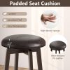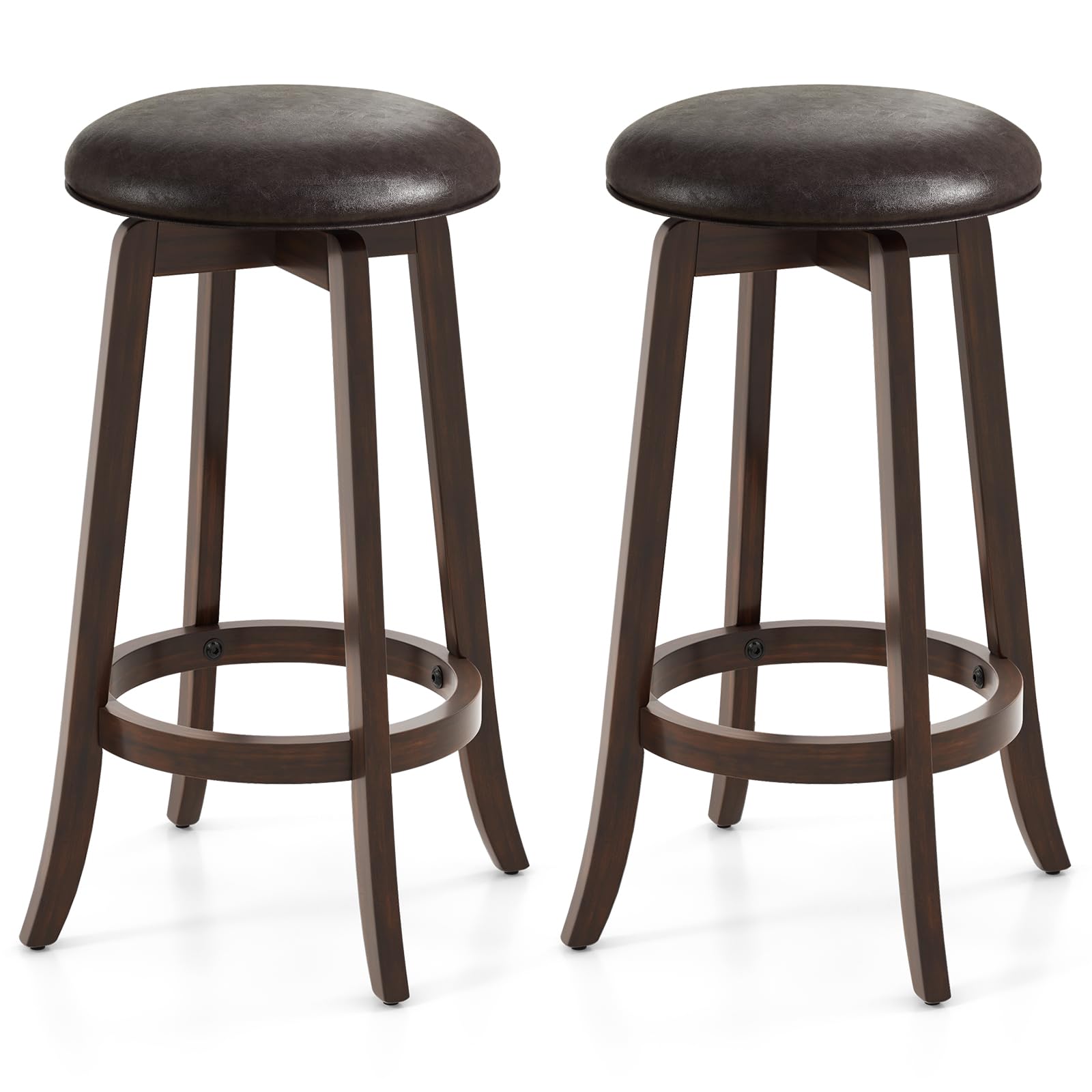 Elevate your home bar with our swivel bar stools set of 2/4. Each bar stool features a thick, high-density sponge seat cushion upholstered in wear-resistant PU leather, offering a touch of elegance and lasting comfort. The solid rubber wood construction ensures unmatched stability, with curved legs for sturdy support and non-slip foot pads to protect your floors. The 360° swivel design allows you to effortlessly rotate for easy movement and interaction, while the built-in footrest enhances comfort. The space-saving, backless design tucks neatly under counters. These swivel bar stools are perfect for kitchen counters, home bars, or dining rooms. Add a retro, luxurious touch to any space with this versatile stool set.