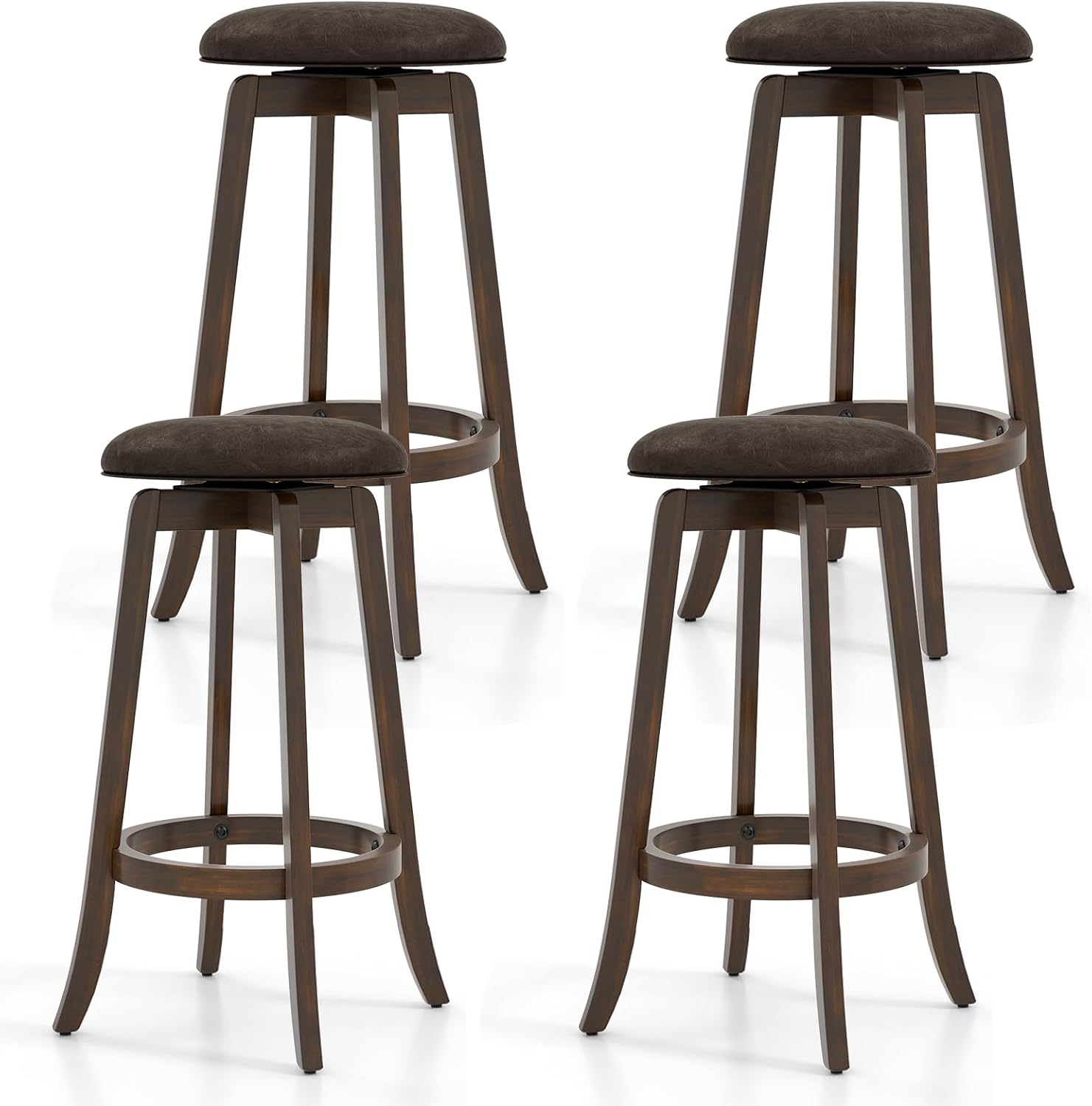 29-Inch Swivel Bar Stools Set of 2/4 Upholstered Barstools w/PU Leather Seat & Solid Rubber Wood Legs