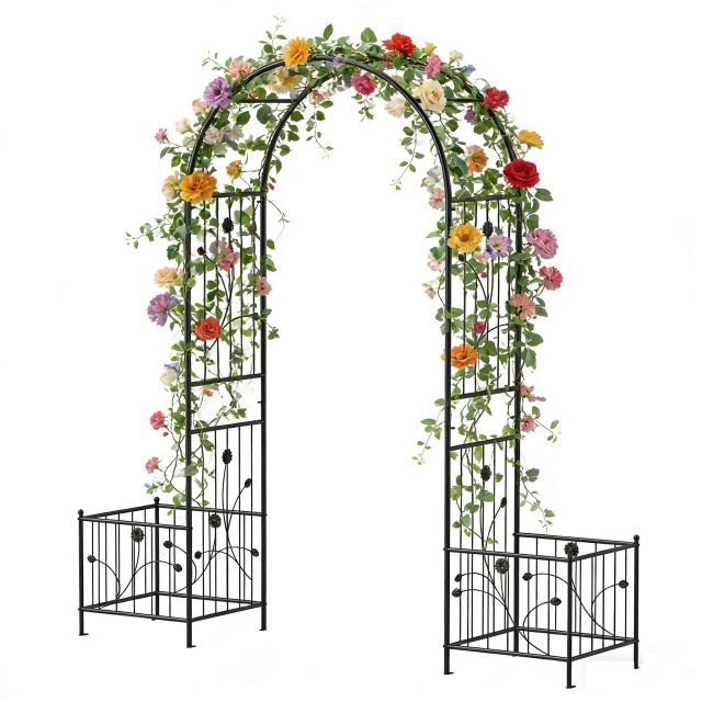 3-in-1 Garden Arch with Lockable Gate & 2 Side Planters