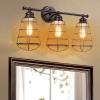 3-Light Vintage Vanity Lights, Industrial Metal Wire Cage Wall Sconces, Metal Wall Mount Lamp (Black & Golden)