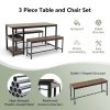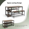 3-Piece Dining Table Set for 4 Rustic Pub Dining Table with 2 Benches