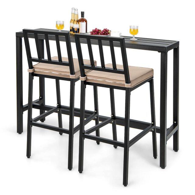 3-Piece Industrial Bar Table Set for 2 Counter Height Pub Table with 2 Stools