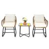 3-Piece Patio Bistro Set with 2 Rattan Chairs and Square Glass Coffee Table