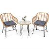 3-Piece Rattan Patio Bistro Set with 2 Cushioned Armchairs & Coffee Table
