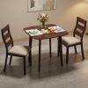 This 3-piece compact dining table set blends Transitional warmth with Mid-Century Modern lines, ideal for small apartments and breakfast nooks. Featuring a rich Walnut wood frame, ergonomic ladder-back chairs with thick foam cushions, and rounded safe corners, it’s stylish, comfortable, and built to last. The water-resistant tabletop and easy-clean PU leather cushions make daily maintenance a breeze—perfect for 2-person meals and cozy gatherings.