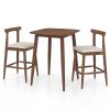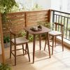 Upgrade your dining experience with the COSTWAY 3-piece counter height farmhouse dining set. Featuring a sturdy 36” solid rubberwood table with a stable pedestal base and rounded edges for safety, this set offers both style and functionality. The matching 24” upholstered bar stools provide ergonomic curved backrests, built-in footrests, and thick cushioned seats with breathable fabric for all-day comfort. Finished in rich walnut, this set perfectly fits kitchen islands, breakfast nooks, and home bars. Supporting up to 200 lbs on the table and 330 lbs per stool, it combines durability with rustic charm. Easy to assemble and maintain with a waterproof, scratch-resistant surface.