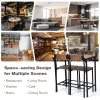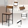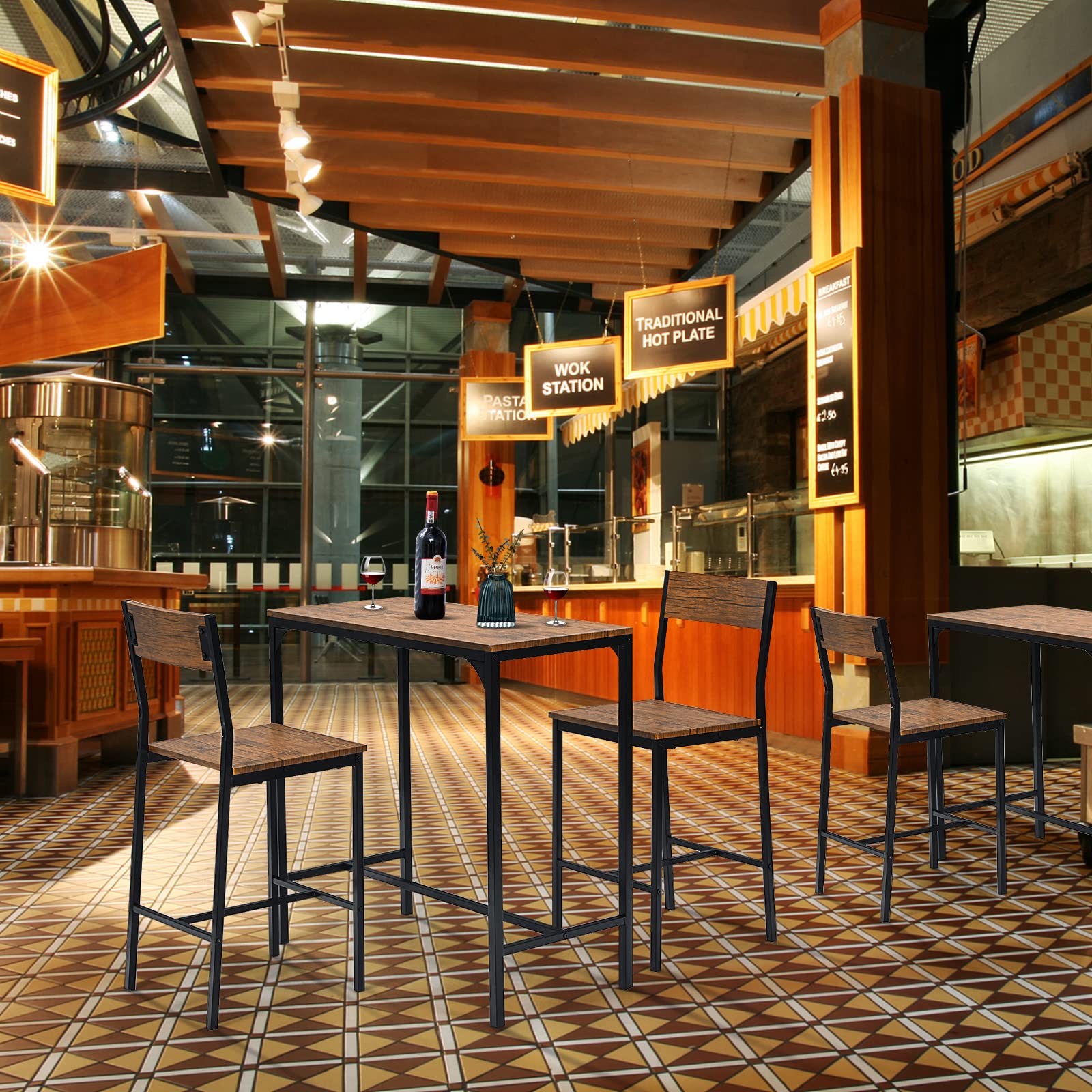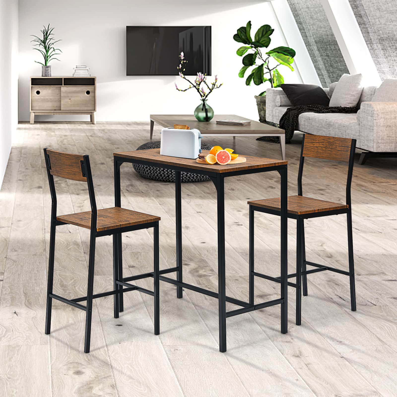 Our practical table and chair set is specially designed to create a perfect dining experience at home or in restaurants. Consists of a table and two chairs, our 3-piece bar table set meets your different requirements. The thickened MDF board and stable triangle frame make the table strong enough to accommodate tableware, cups, vases, plates and bowls. Supported by heavy-duty steel structure, the chairs with high-quality horizontal metal bars feature high load capacity for prolonged life. What’s more, the ergonomic hollow back and wide seat give you a comfortable seating experience. You can relax your feet on the footrest for unparalleled enjoyment. The chairs allow you to push under the table to maximize your space. With beautiful wood grain veneer and clean lines, this contemporary table and chair set will be an aesthetically appealing piece of furniture for your interior design.