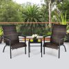 3 Pieces Patio Bistro Set Outdoor Rattan Conversation Set with Coffee Table