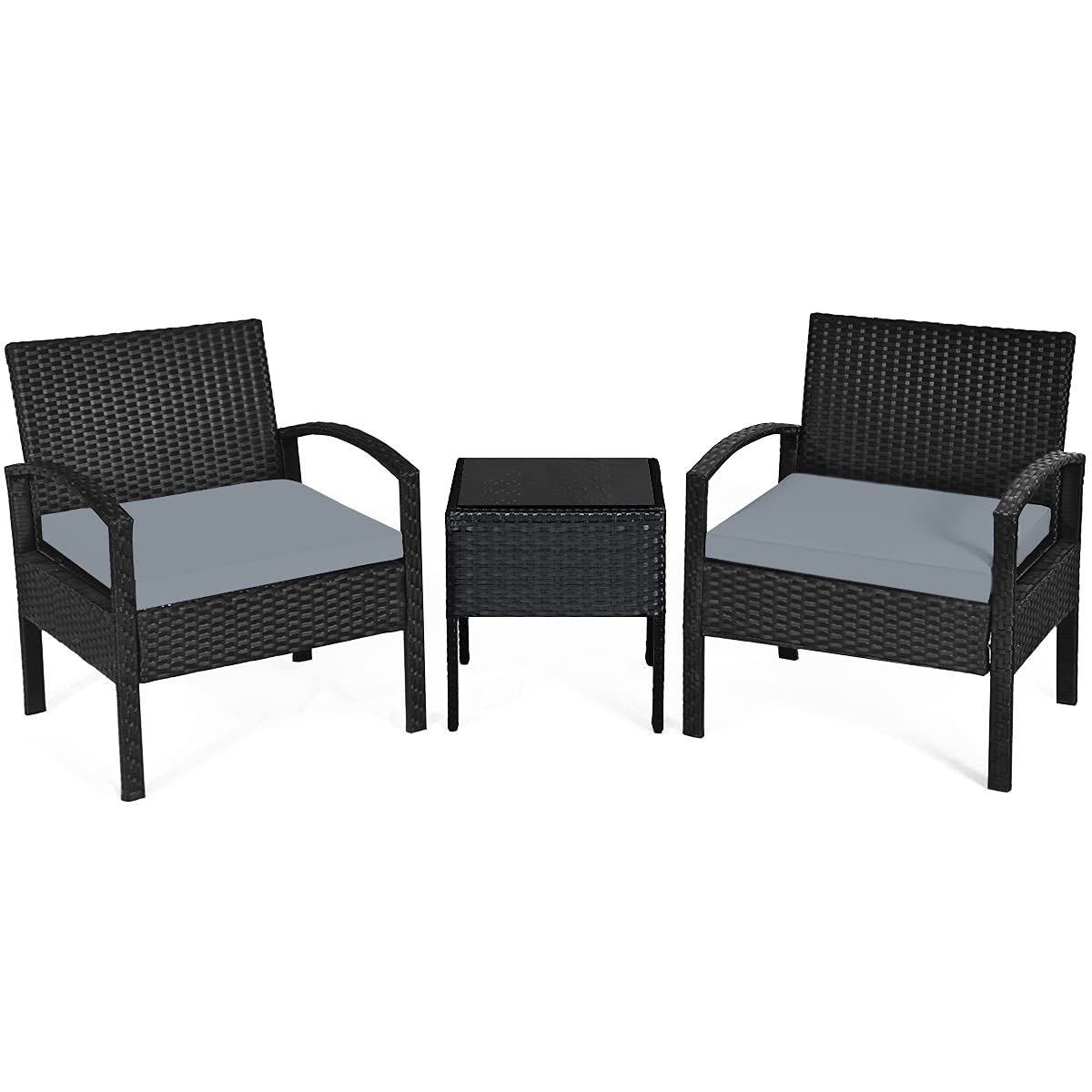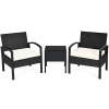 3 Pieces Patio Furniture Set Outdoor Rattan Conversation Set with 2 Chairs & Coffee Table
