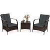 This set of outdoor furniture is made of high-quality rattan and strong steel, which is durable and has a long service life. The thick soft cushions are comfortable and breathable, which can relieve your fatigue of the whole day. Removable seat covers and tempered glass table tops are easy to clean. Modern and stylish lines make this furniture set a perfect embellishment for backyard, patio, balcony or any other outdoor space! If you are looking for such a rattan bistro set, this will be your ideal choice!