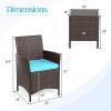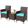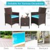 We present you our 3-piece rattan patio conversation set for a comfortable experience in your leisure time. This set of outdoor furniture is built from premium rattan and sturdy steel. Therefore, durability and long service life is what it offers. Besides, the thick soft cushions are comfortable and breathable, thus relieving fatigue instantly. The removable seat covers and tempered glass table-top can be cleaned easily. Next, when it comes to appearance, its modern and stylish lines make it a perfect embellishment for backyard, patio, balcony and other spaces. This furniture set is your ideal choice if you’re wanting of a comfortable rattan bistro set.