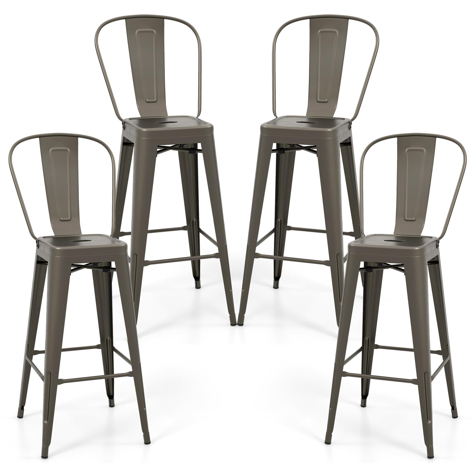 Made of high quality steel, these chairs with powder spraying treatment have high rust resistance. And cross structure and non-slip rubber feet offer additional stability. In addition, you can also quickly assemble and disassemble the backrest of the chair according to your needs. Most importantly, ergonomic backrest and spacious seat provide you with comfortable using experience. All in all, don’t miss our set of four bar stools.