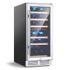• [High Efficiency & Low Noise]Our wine cooler is designed with circulating fan and quiet & efficient compressor for fast and even cooling, keeping your wines in an ideal climate. Compared to other wine cellars with the same size, our wine cooler is energy-saving and ensures 120.3 kWh estimated yearly use. Besides, it also features functions of automatic defrosting and active charcoal filtration.