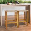 The patios furniture set includes 2 bar stools. The curved seat brings you a comfortable relax time when seat on this patio stool. You can rest your feet on the footrests as needed. In addition, made of high quality PE wicker and supported by acacia wood frame, this bar height stool set is durable and sturdy for years to come. Each bar stool is upgraded with adjustable foot pads to ensure the even legs while assembled. With their 30” seat height, from ground to seat, these wood bar stools can be used for any standard bar table. This set of 2 stools will be a beautiful addition to your backyard, patio, or balcony. Get some fresh air and enjoy your meals/drinks on these patio stools.