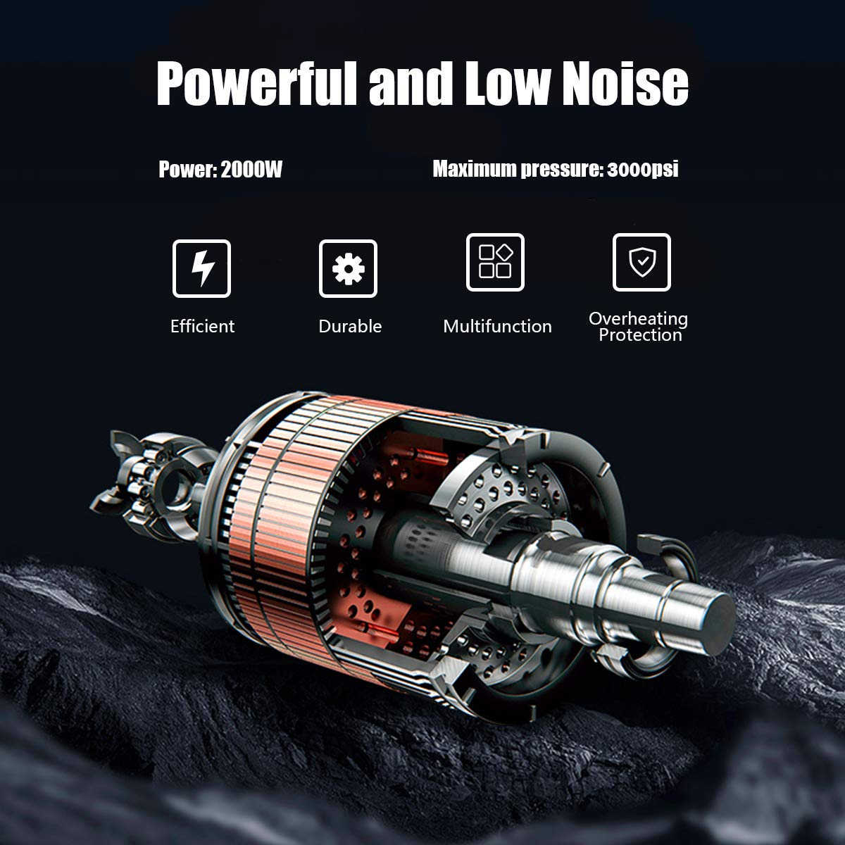 - 【Powerful Motor for High-Efficiency Cleaning】Our high pressure washer features a powerful 2000W motor, which generates up to 3000 PSI/2.0 GPM, it is an ideal way to quickly and easily blasts away caked mud, gunk and grime, helping you solve a variety of heavy-duty cleaning tasks.