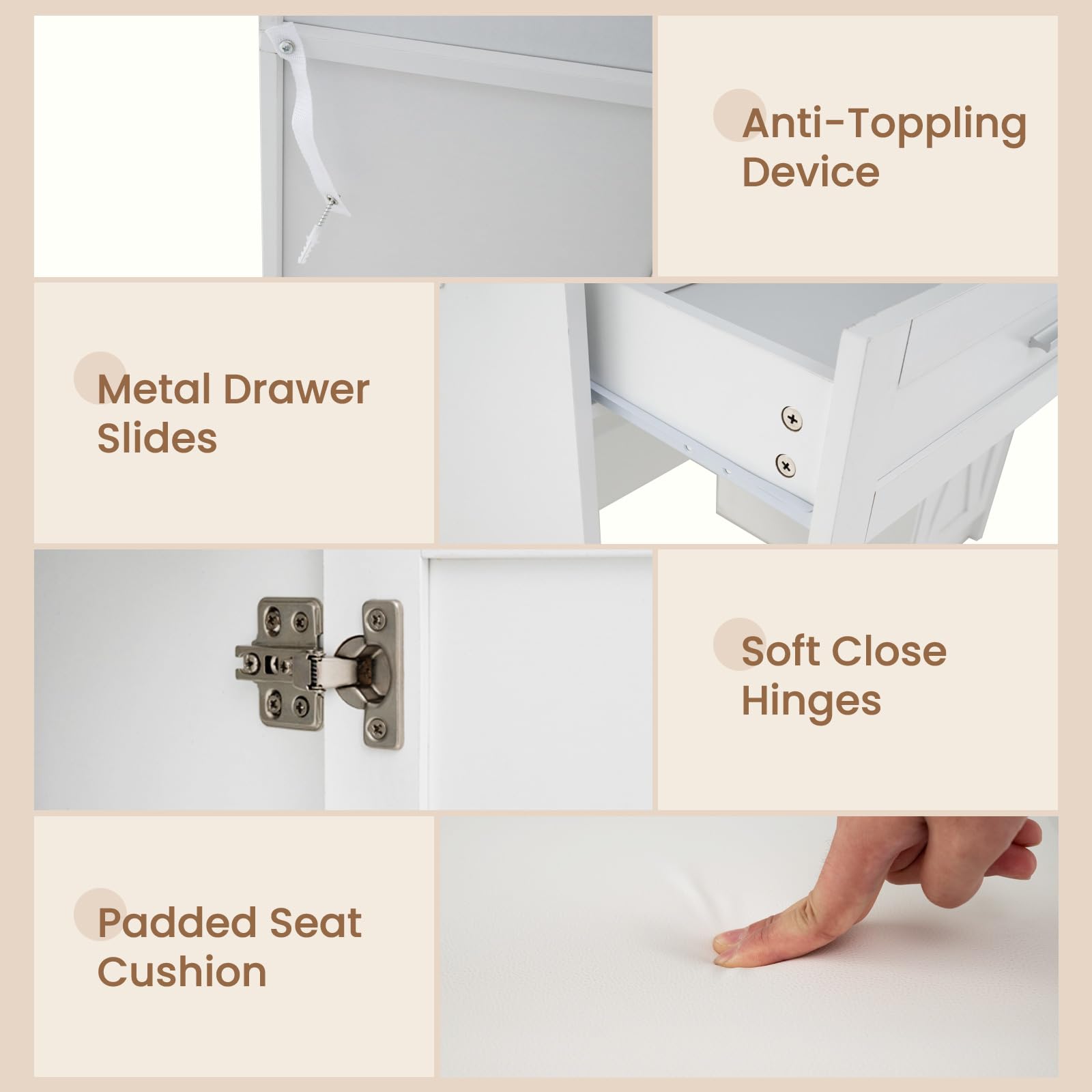 35.5'' Farmhouse Dressing Table with Jewelry Cabinet