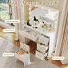 Transform your beauty routine with this sleek, contemporary vanity desk designed for ultimate functionality and style. The centerpiece is a stunning 35.5’’ x 23.5’’ mirror, providing an expansive, distortion-free view for flawless full-body styling and precise makeup application.