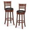 The upholstered bar chairs are covered with superior PU leather while filled with soft sponge. Thus, you can have access to a comfortable sitting. Besides, the thoughtful backrest and footrest offer more support to your body for upgraded coziness. Framed by sturdy rubber wood, the swivel bar stools are durable and sturdy. Additionally, when you need to turn to your partner, the 360° swivel seat helps. Furthermore, the vintage style enables these bar height chairs to fit any place, like the dining room, bar, cafe and more.