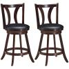 Our rustic swivel bar stools will provide you with a comfortable sitting experience while adding a touch of elegance to your room layout. Made of selected rubber wood, these bar stools are durable and sturdy for long time use. The four thick flared legs with a built-in foot ring provide strong support and ensure overall stability. Featuring 360-degree swivel design, these bar stools give you the freedom of flexible movement, so you can communicate with others in any direction. Besides, PVC cushioned seat is comfortable to sit. You can put your legs on the footrest and enjoy leisure time. With its rustic appearance, our counter height bar stool is perfect for bistro, kitchen, coffee house, etc.